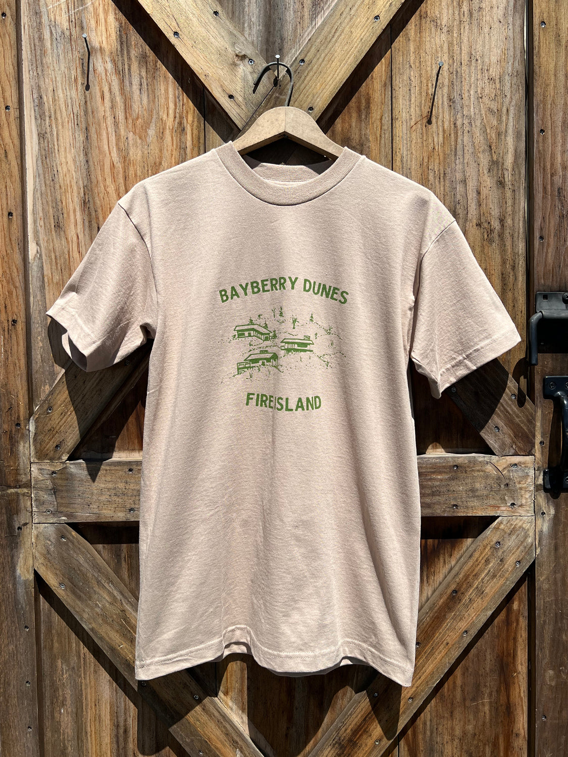 Regular fit tee shirt. The beach houses graphic is pulled from an original 1970s map of Fire Island.