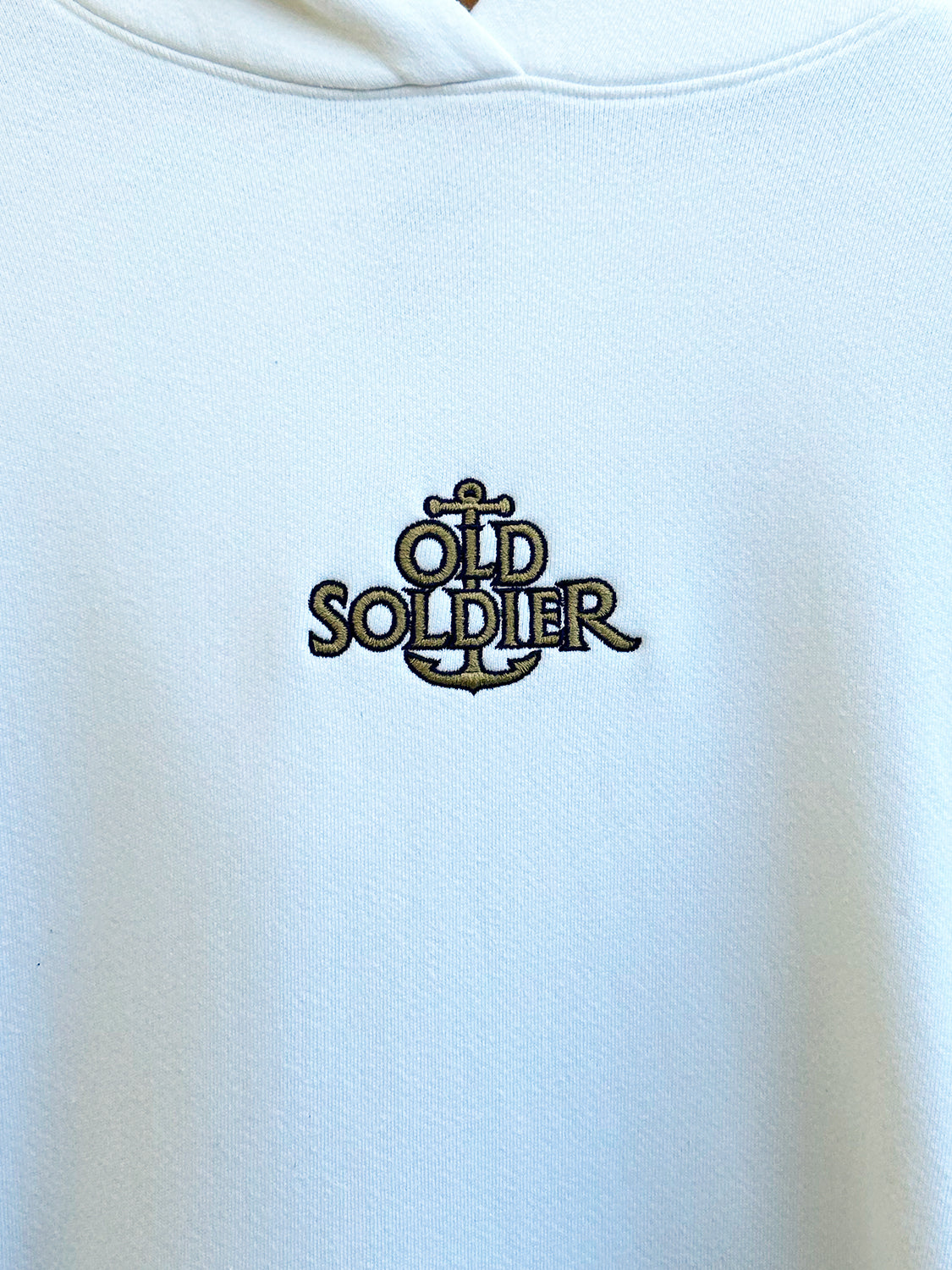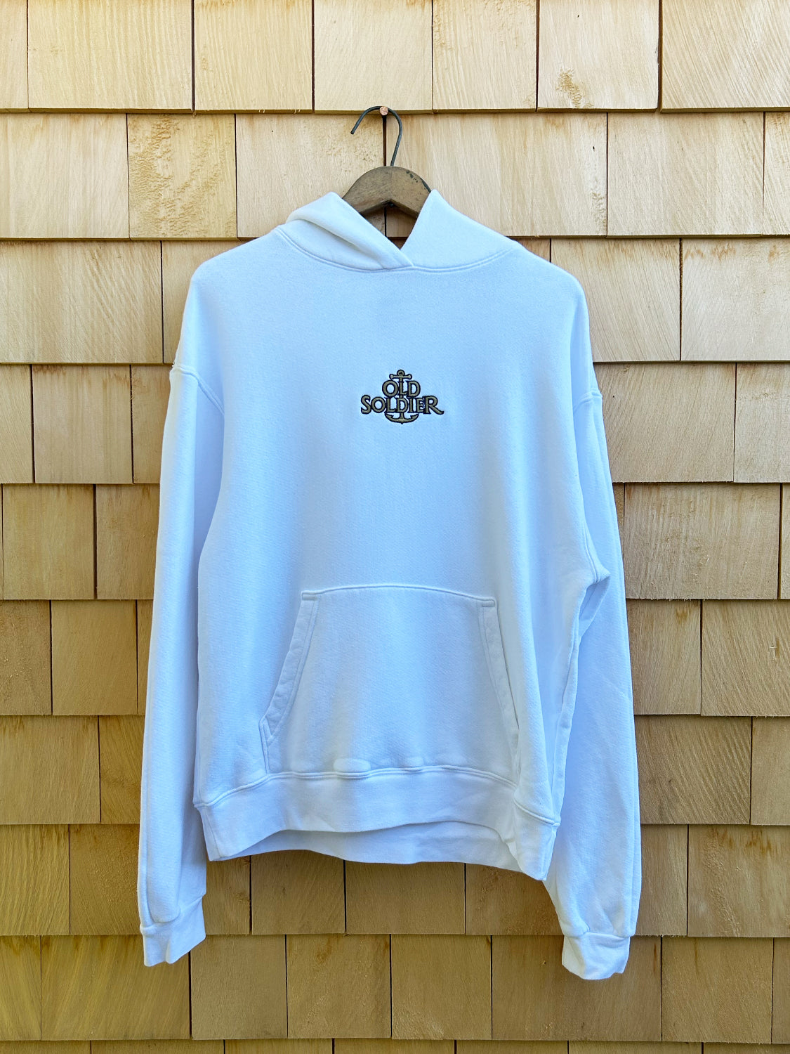 Relaxed fit pullover hoodie with front chest embroidery and full color back screen print.