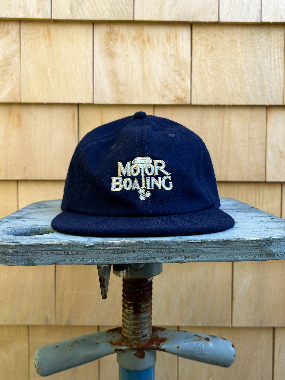 Premium wool cap with buckle closure featuring a rare 1920s-era MotorBoating emblem embroidery.