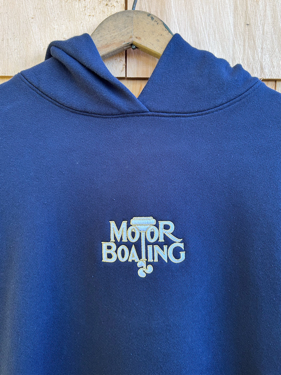 Relaxed fit pullover hoodie with front chest embroidery and full color back screen print.